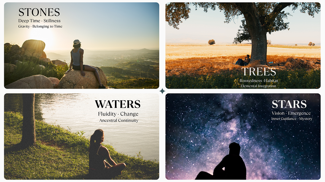 Each week, you’ll connect with one teacher from the living world: Stones, Trees, Waters, and Stars through practices that are: